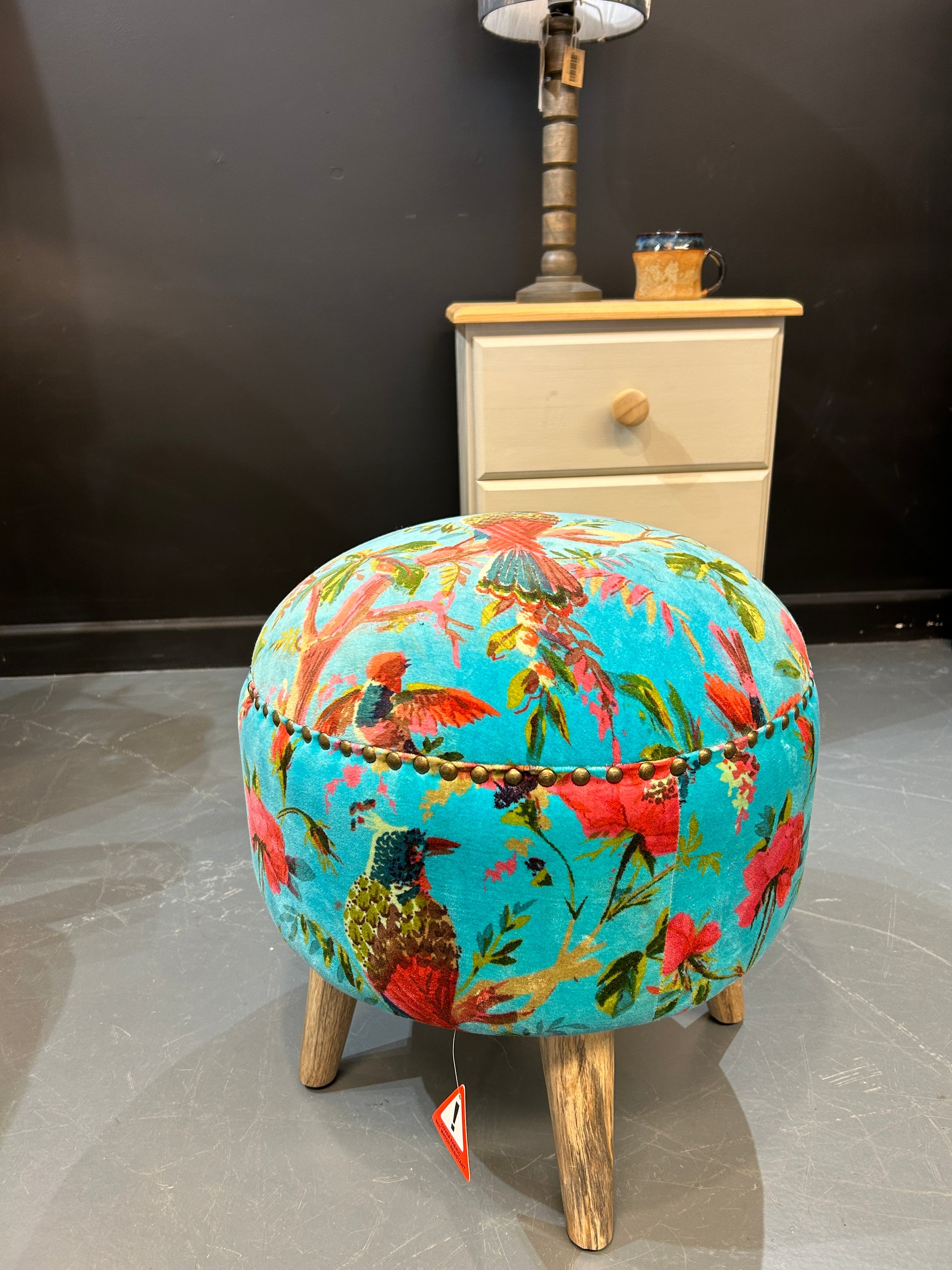 This wonderful Teal Paradise Footstool is made from Mango wood with a cotton velvet covering
