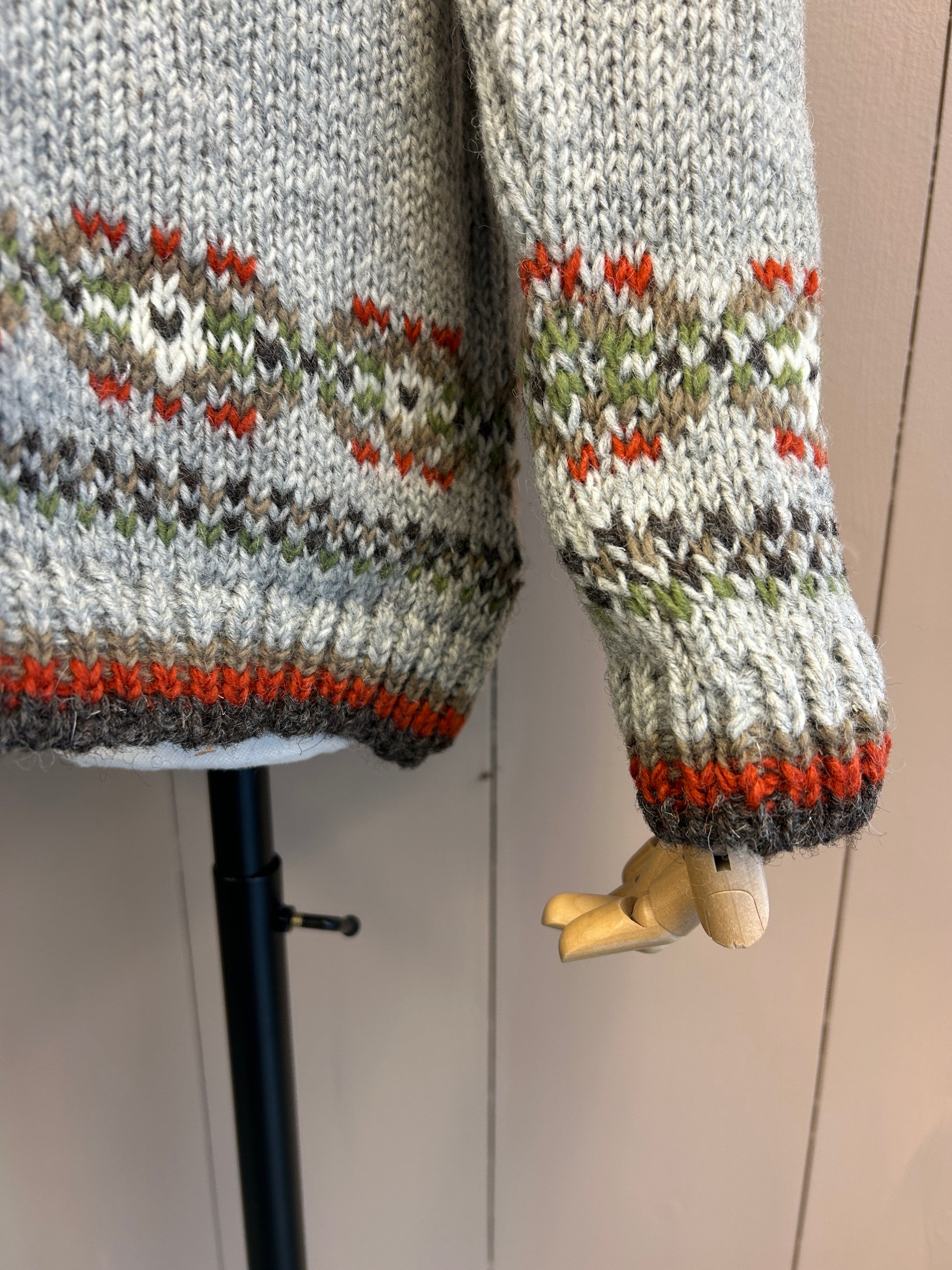 This beautiful sweater is 100% wool  and has been hand knitted using traditional methods in Nepal.